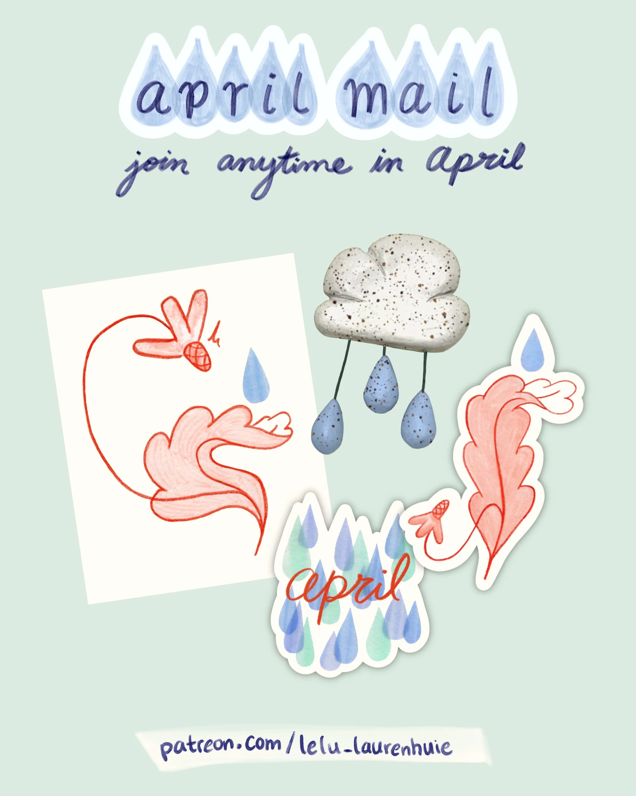 This month on Patreon I will be mailing out two stickers, a 4”x5” mini print, and a handmade ceramic magnet.