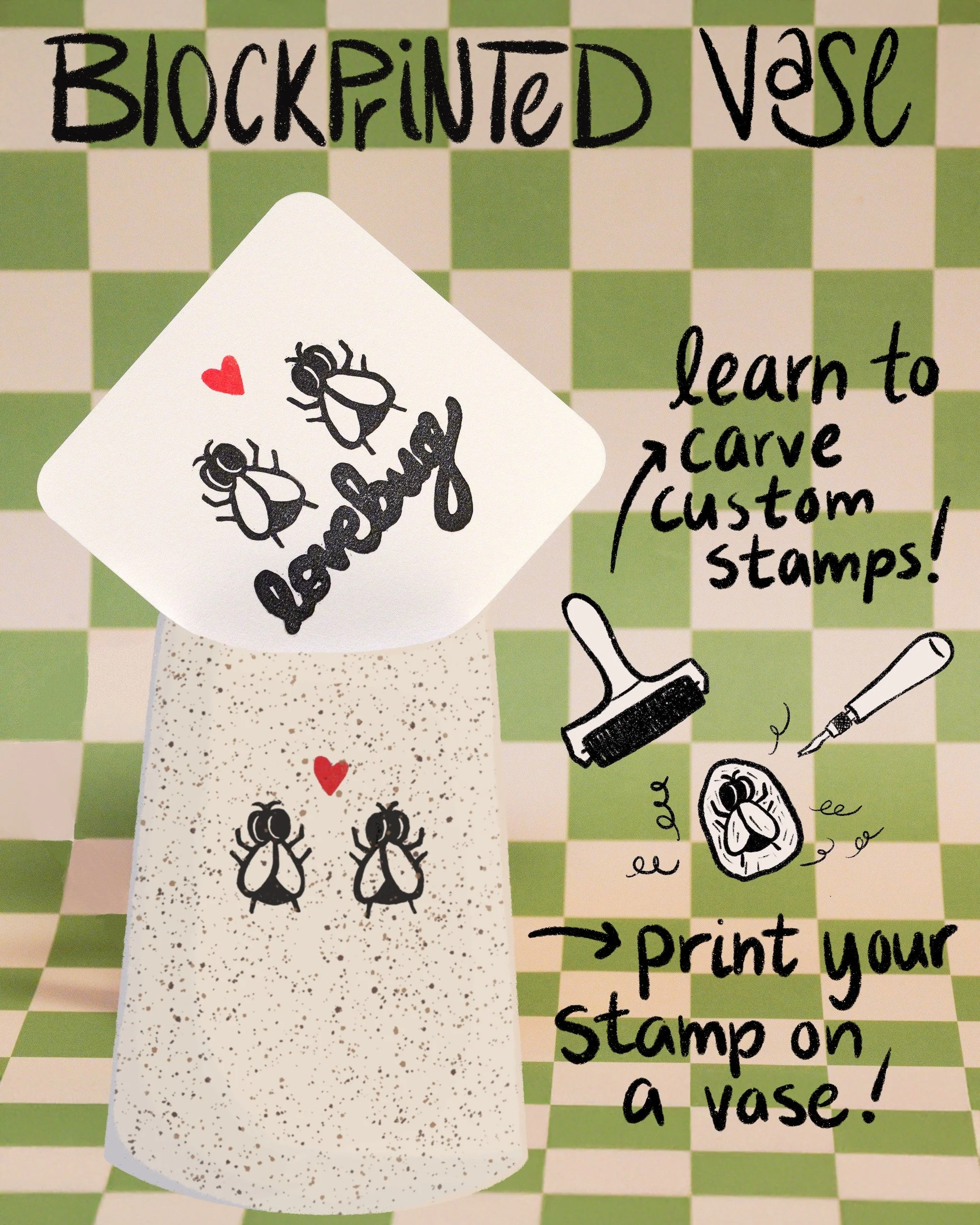 Valentine’s Day Workshop. Learn stamp-carving as a unique way to decorate pottery!